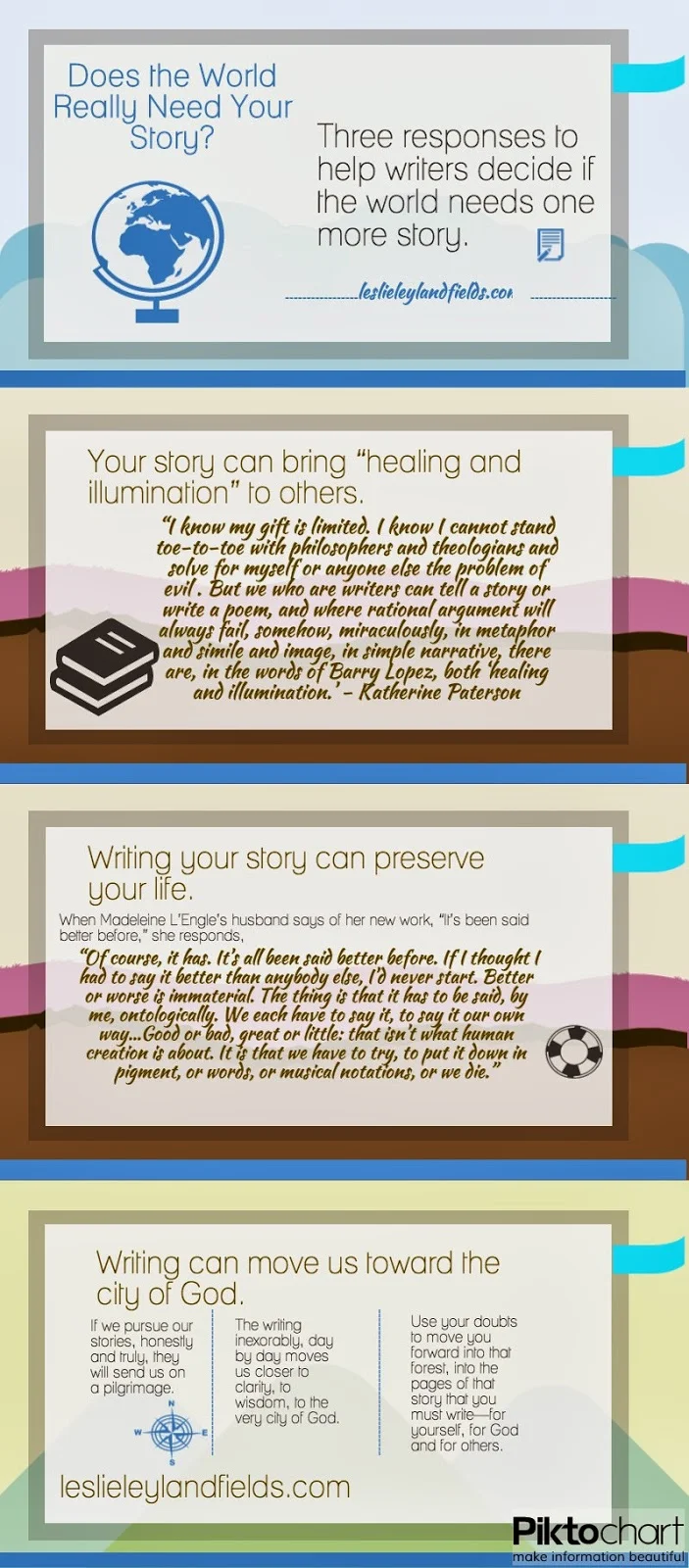 Doubts track me down no matter where I am. I have learned not to dismiss them. They force me to consider and reconsider. Does the world really need one more story?