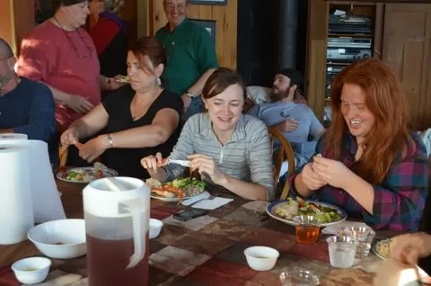 "Meals were bountiful! Love the local flavors, the special treat of salmon, caribou and crab. . . . Gina was very sweet in giving me special (writing) stuff that she wanted me to have. I was amazed at the breadth of knowledge both Leslie and Gina had."-------David Cecil