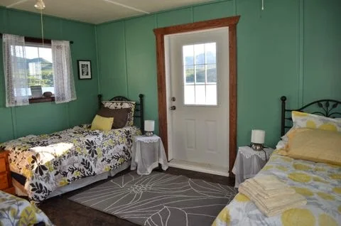 New, clean, comfortable heated rooms, all with mountain and ocean views, double occupancy for all but the dockhouse, a cabin that sits literally over the ocean, which sleeps 4. Do Please remember, though, this IS a wilderness island! We use an OUTHOUSE and BANYA. The banya is a Russian style wood-fired steambath in a separate building. Banya-bathing is available most every night. And both outhouses are clean and new, offering the best outhouse experience you've ever had---I promise! Still, if cleanliness is next to godliness for you, this may not be your workshop!