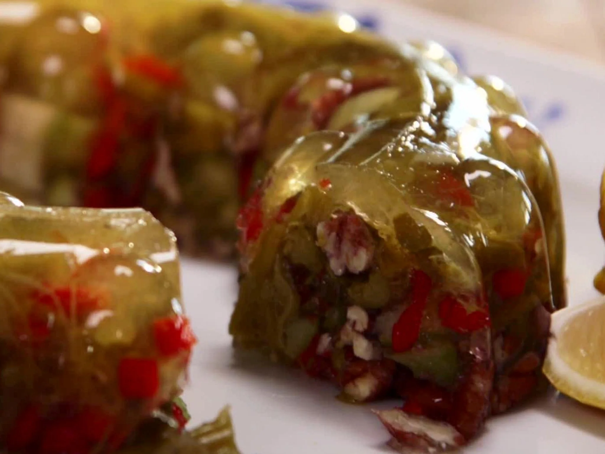 There must be green vegetables, of course. There's always the beloved Green Bean Casserole, but some prefer their greens suspended. Looking as little like a vegetable as possible. For these people, Paula Deen has created "Geriatric Salad"