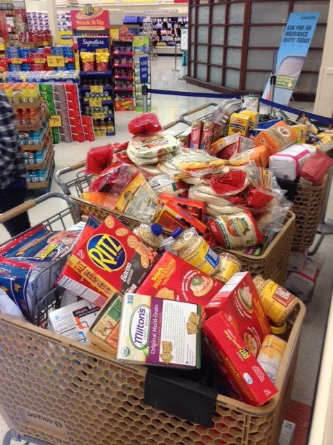 None of this is easy for me. I'm not particularly fond of shopping. Especially in gargantuan amounts. I am a poet in heart and soul, a minimalist. I like half-empty fridges, I like scavenging, I like the edge of hunger, the need that reminds me how frail and weak and dependent of a creature I am. So filling five carts at Safeway to overflowing, ordering a literal ton of canned goods from Seattle, and two shopping carts at Walmart stresses me out (though I am putting a good face on for the camera!)