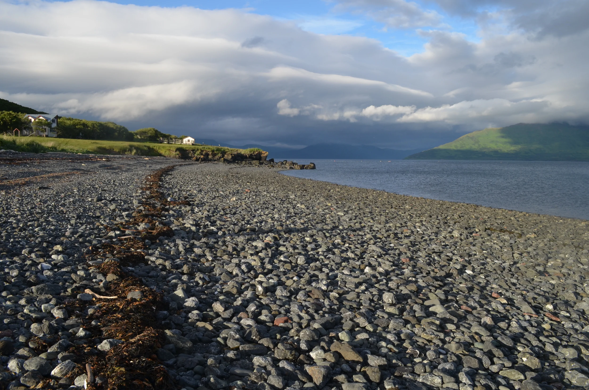 But I am glad to leave stores behind for these next months. I am glad to be going where I am immersed in beaches, ocean and mountain, where deer bed down in our pasture, where sea gulls keen over their nests, where kelp scribbles messages on the tide line, where halibut swim like a wave and falcons fall to their prey like shooting stars, where the midnight sun sets the clouds on fire and seals stare you down.