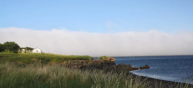 We have 22 hours of light right now. But so sadly—-our solstice celebration was swallowed by fog and rain, utterly. Here it comes, the massive fog bank that moved in yesterday, swallowing the sun and every bright thought . ..