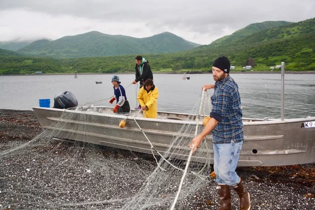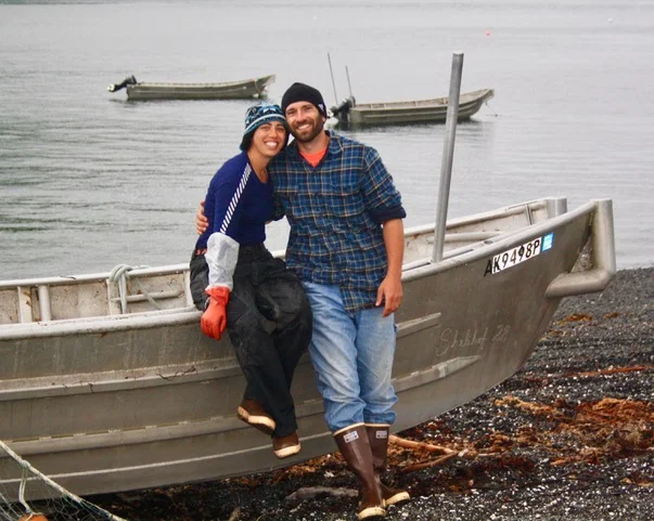 But the work goes on. (My daughter and Aaron, still honeymooning as they work among nets, fish and kelp.)