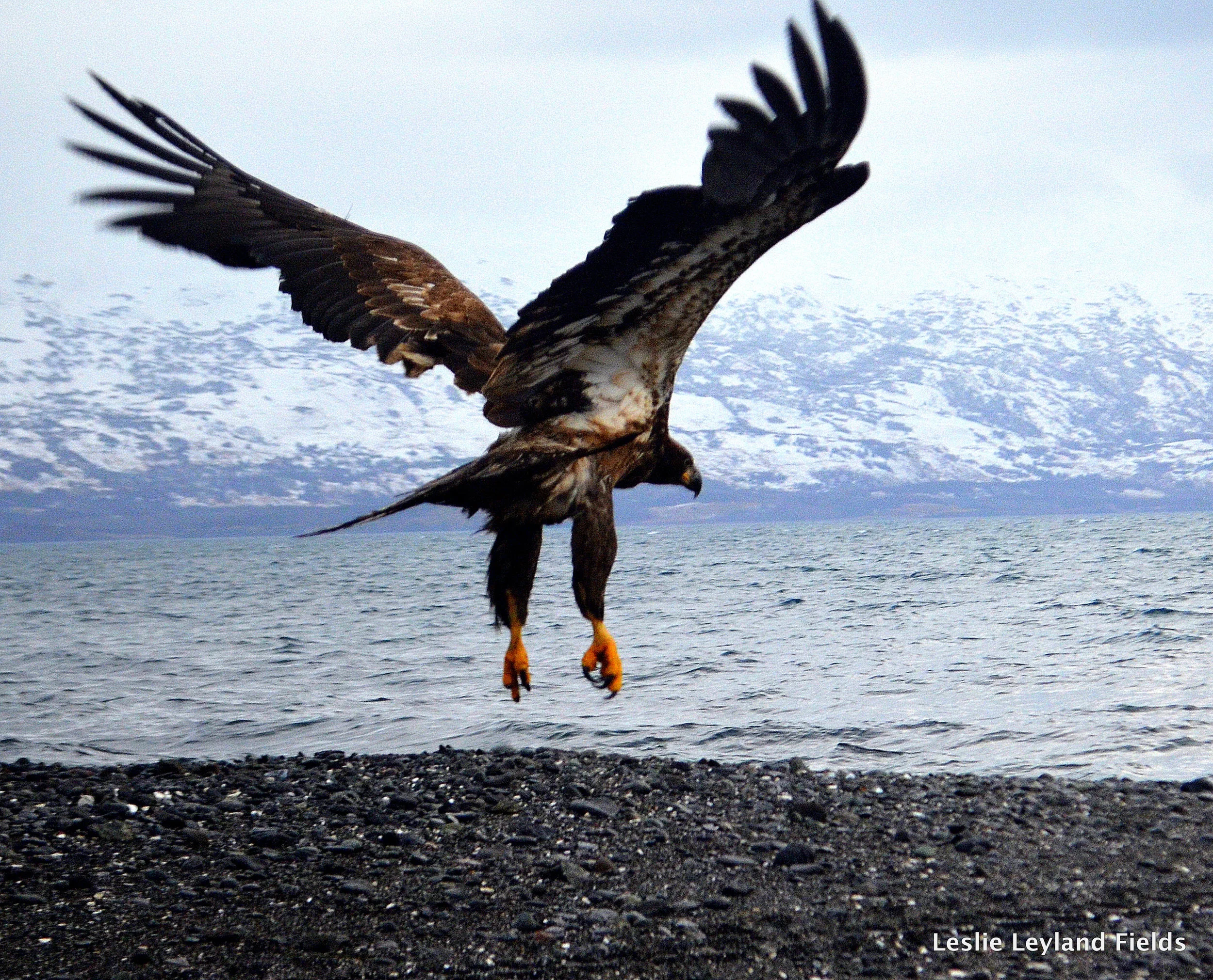 We did not go to our fishcamp for eagles. Two days after Christmas we flew in the bush plane across Kodiak Island, over heavy-snowed mountains and then rode in a frigid winter skiff not for eagles, my constant neighbors, but-----for deer. (I will tell of that hunt later!)