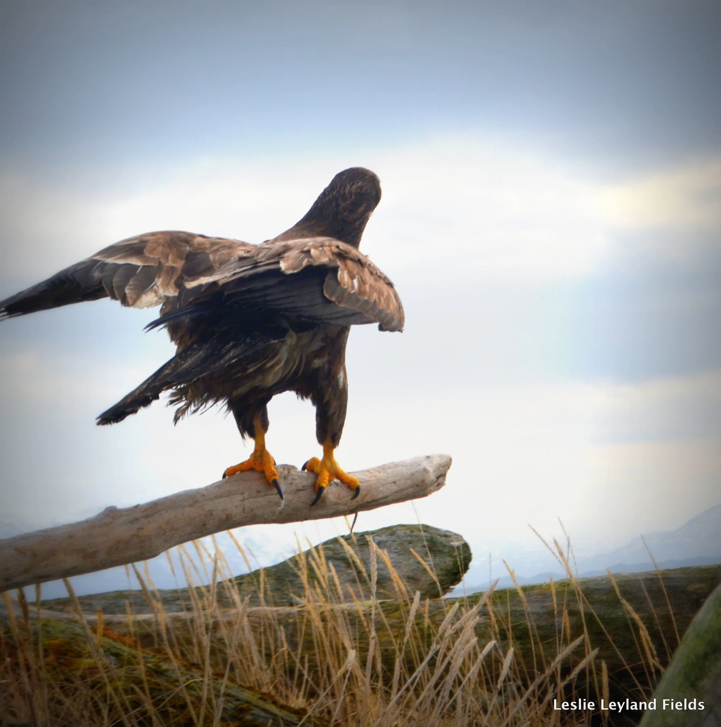 I believe in miracles, but I don’t believe in signs, and I’m a skeptic about visions, but here is this eagle on my beach for two days, and I cannot get enough of him. He haunts the beach for two days, soaring over my head, beside me.