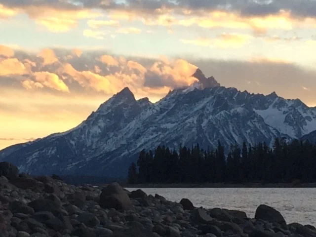 And later, after the river and canyon, the sun wrapped a scarlet scarf around the neck of the Tetons as it departed.
