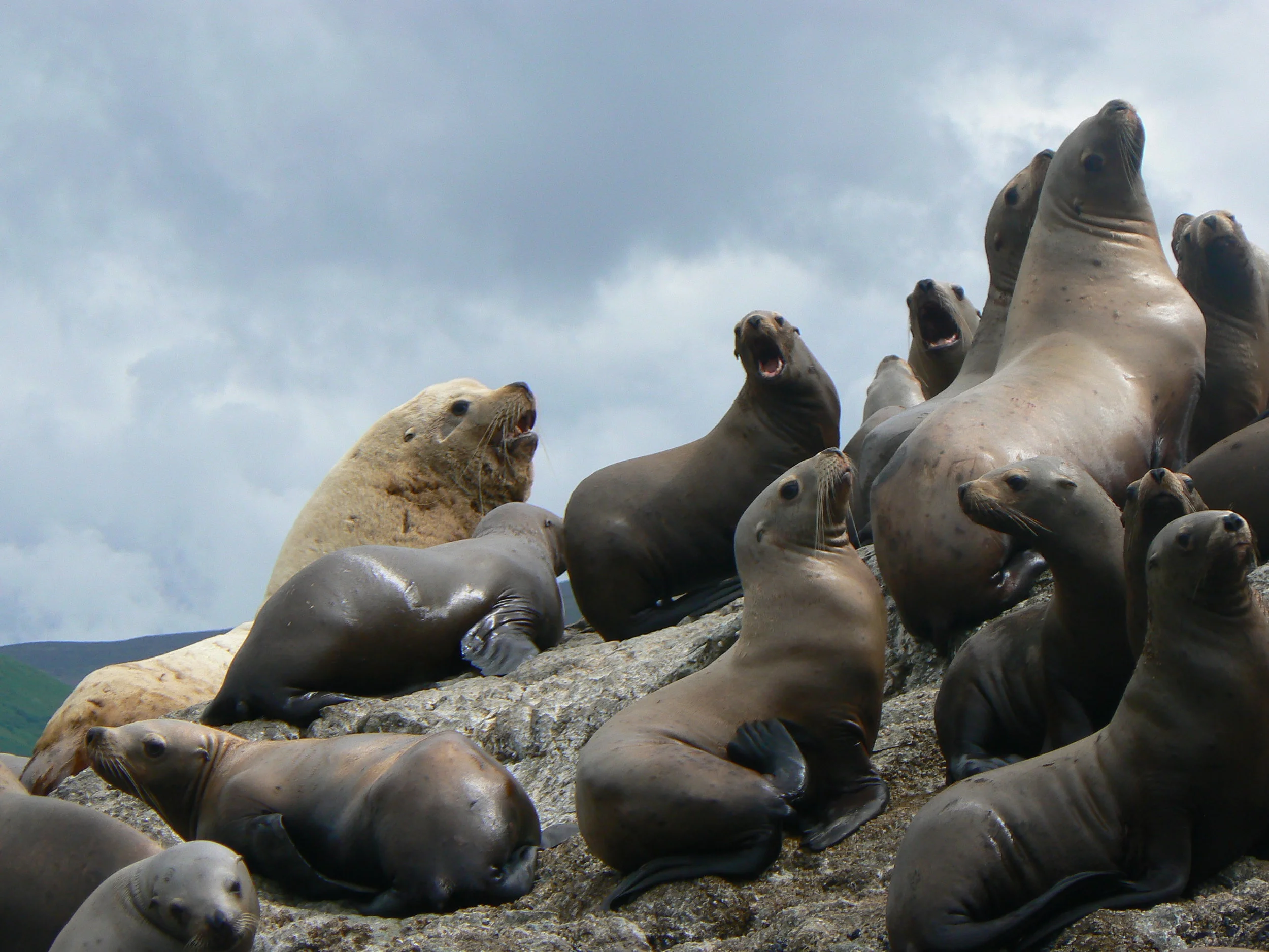 then haul out on rocks and reefs, argue and fight over king of the rock, rule by force and heft and roar.