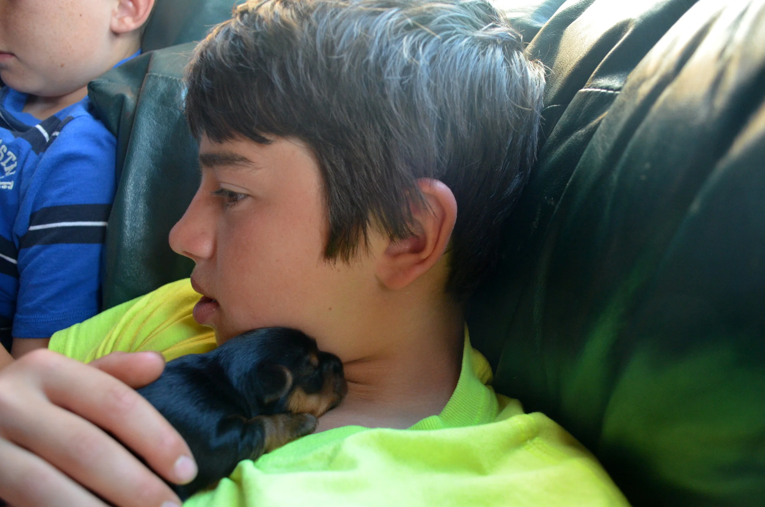 In my house, my dog Sophie brings forth young, birthing each into my hand.