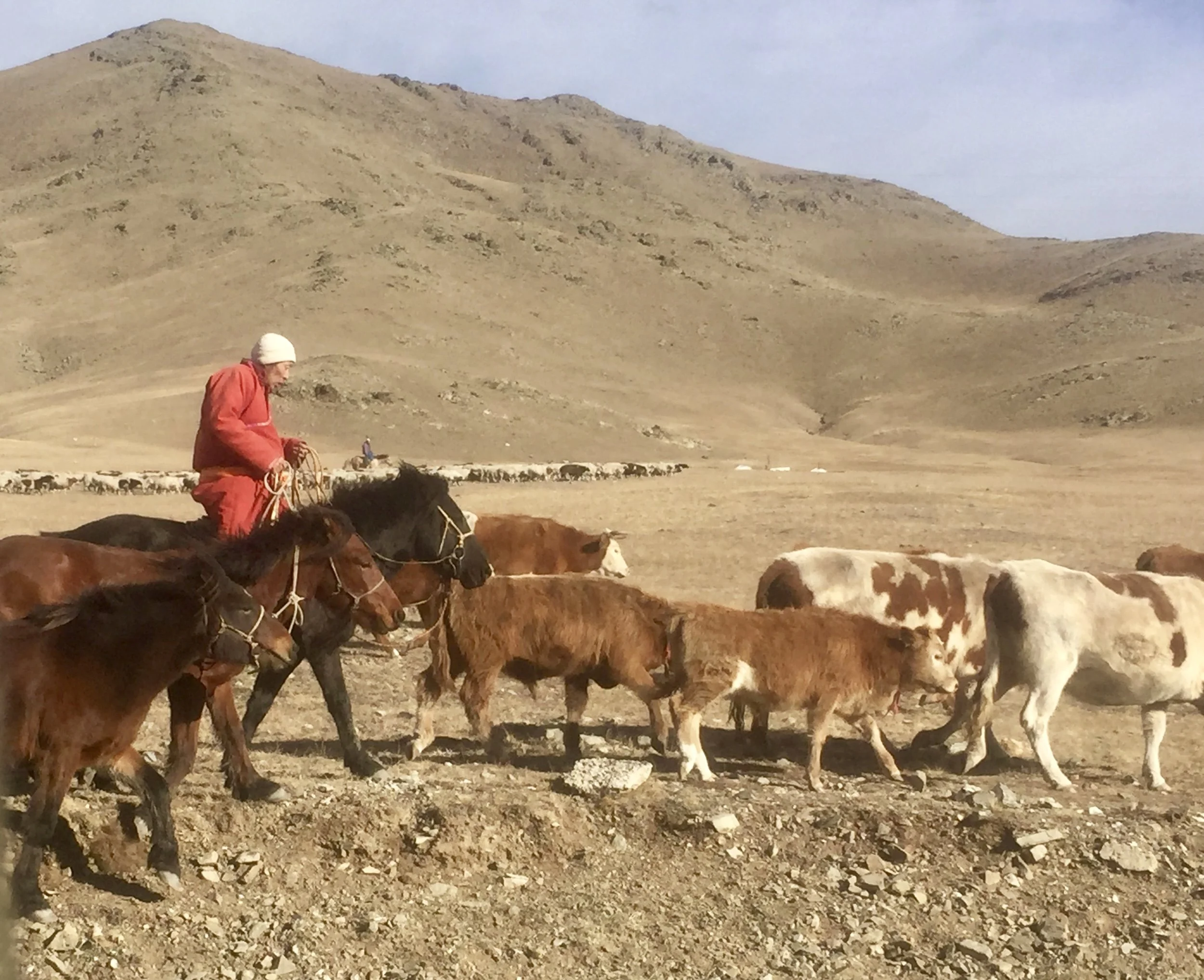Three days ago we drove out of the city into the countryside, into the tawny brown hills and mountains that have already seen snow since September. But this day, the snow was gone. We saw herds of animals everywhere.