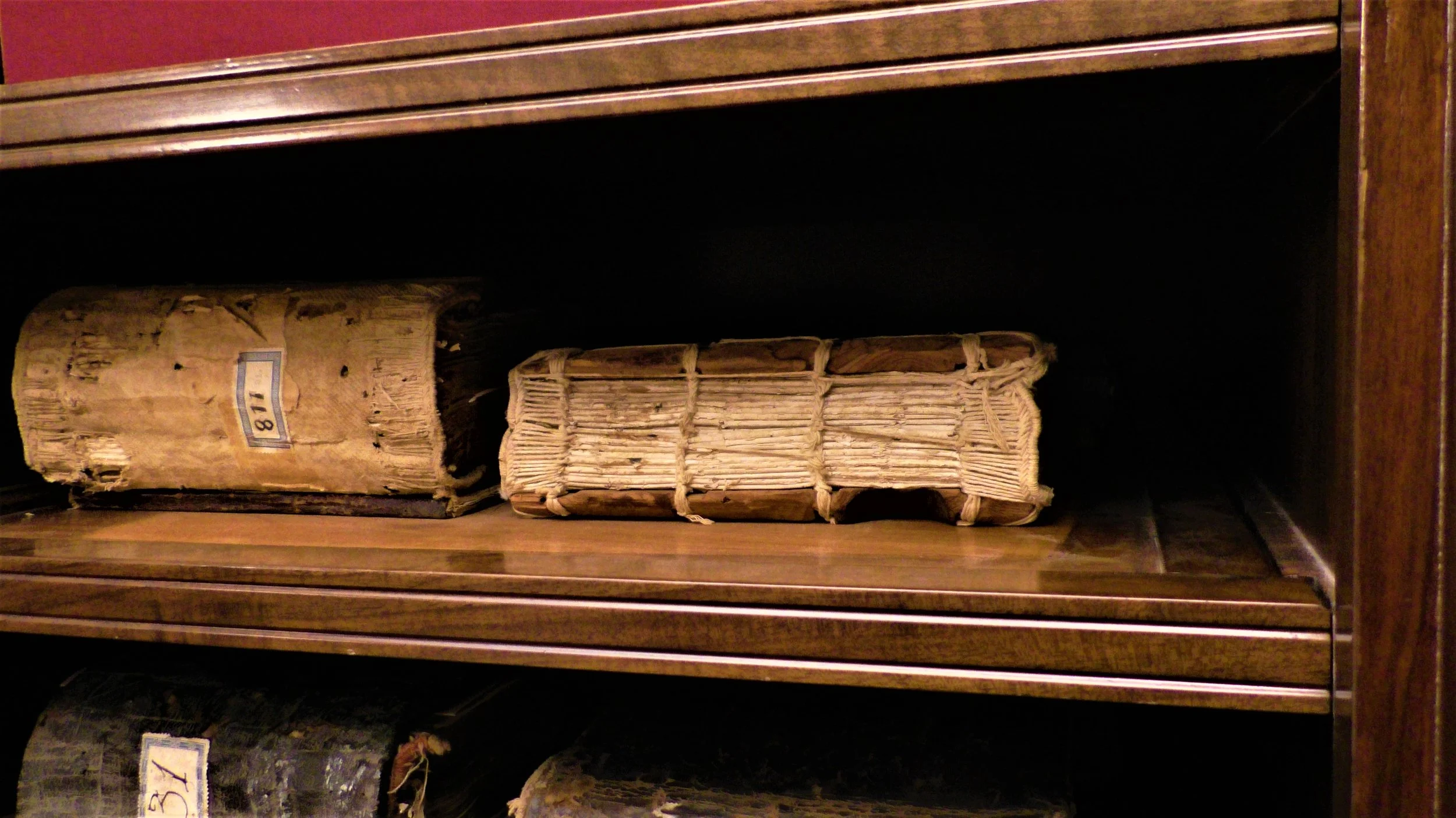 An hour later we tentatively followed our host down three sets of arched tunneling stairs---down down down, emerging into a room surprising for its size and light, with walls of ancient scrolls and books. He showed us one volume after another . ...works by the Church Fathers, Greek philosphers, hand-bound volumes, scrolls, parchments . . . .