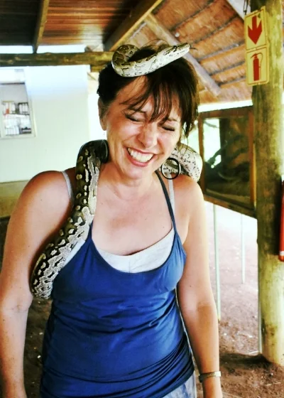 We have been in Zimbabwe and Botswana this week, talking to so many people, learning as much as we can. Which meant visiting a snake rehab center where a python took a liking to my hair. (This was a "haaaa!" and "yuck" moment both at the same time.)