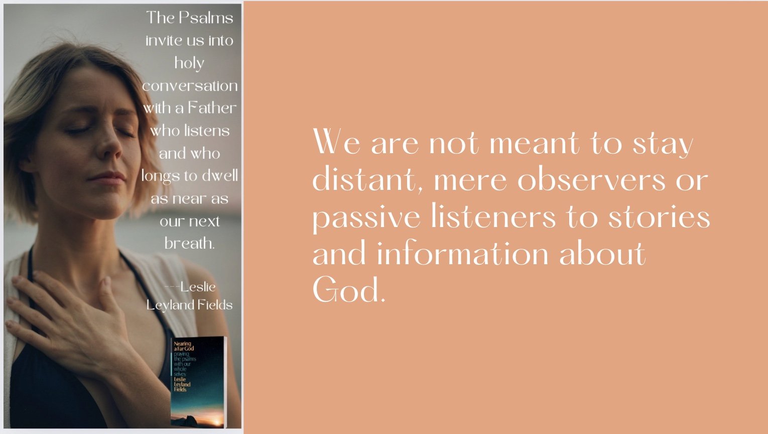 Why am I telling you this story? This story is from Chapter Four in Nearing a Far God: Praying the Psalms with Our Whole Selves. It’s the chapter on the wisdom psalms. This is about wisdom and following the right voice? Every hour, voices call to us from every direction, don’t they? Claiming the way to prosperity, truth, freedom, happiness . . . . Even some voices in the Church mislead and get it wrong. When I’m confused and crazy with all the noise, I know where to go: to God’s word. And these days, I go the wisdom psalms. This is one of my staples, the extraordinary gateway to all the Psalms:
